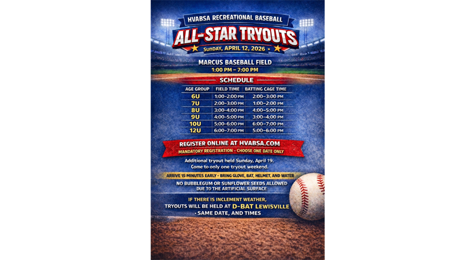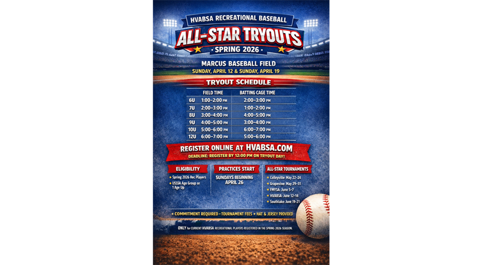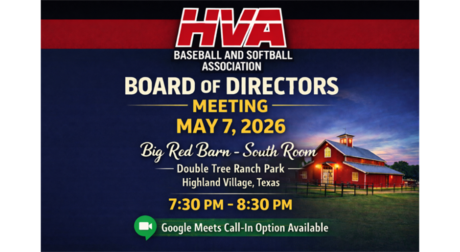HVABSA Parent Meeting9/4/2025 @ 6:30p Double Tree Ranch Park - Big Red Barn310 Highland Village Rd. Highland Village, TX
